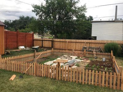 The garden began in 2021, as a Covid-19 hobby. Backyard grass was removed, and a small (20' x 20') picket fence was built around the plot to keep the abundant rabbits at bay. Since then, the garden has grown to include a hoop house, and 23 total beds, containing vegetables, tubers, roots, and herbs.